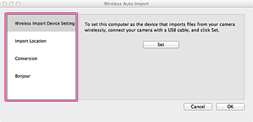 | [Wireless Import Device Setting] | Set your Mac as the device for importing files using Wi-Fi. |