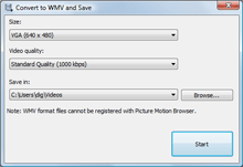 屏幕上会显示[转换为 WMV 并保存]窗口。