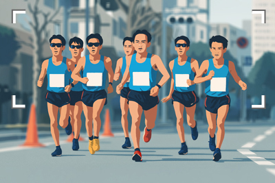 You can keep the focus on the lead runner in track-and-field events where the positions change suddenly, such as sprint races, long-distance races, and marathons on public roads. To position the face of the runner in the AF frame, use [Custom] to set the size of the focus area so that it covers the range from the waist to the head.