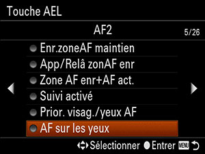 [AF sur les yeux] est maintenant affecté à [Touche AEL], qui était précédemment affectée à [Maintien AEL].