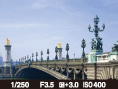 Mostra informação básica de fotografia. Mostra graficamente a velocidade do obturador e o valor de abertura.