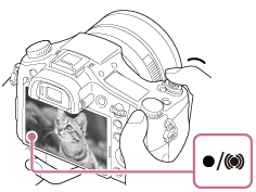 - قم بتعديل زاوية الشاشة، وامسك الكاميرا. أو انظر عبر منظار الرؤية وامسك الكاميرا.
