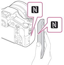 (značka N). - Smartphonem se dotkněte přístroje asi na 1-2 sekundy, dokud se nespustí aplikace „PlayMemories Mobile“.