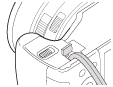 AC-PW20 AC adapter (külön megvásárolható) használata esetén használja ezt. Helyezze a csatlakozólemez fedelét az áramforrásrekeszbe, majd bújtassa át az alábbi ábra szerint a kábelt a csatlakozólemez fedelén.