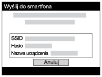 - Urządzenie udostępnia informacje na temat połączenia przy użyciu funkcji [Wyślij do smartfona] z urządzeniem, które ma uprawnienia do połączeń. Jeśli chcesz zmienić urządzenie uprawnione do połączenia z urządzeniem, skasuj ustawienia połączenia, postępując zgodnie z poniższą procedurą. MENU → [Sieć bezprzew.] → [Reset SSID/hasła]. Po skasowaniu danych połączenia należy ponownie zarejestrować smartfon.