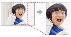 Bila produk ini mendeteksi dan memotret wajah, subjek pemotretan makro atau subjek yang terlacak oleh [Penguncian AF], produk akan secara otomatis memotong gambar dalam komposisi yang sesuai, lalu menyimpannya. Gambar awal dan yang dipotong akan disimpan. Gambar yang dipotong akan direkam dalam ukuran yang sama seperti ukuran gambar awal.