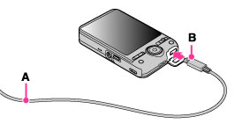 Lorsque le message de connexion de l’appareil à un ordinateur est affiché, procédez au raccordement à l’aide du câble micro-USB (fourni) (A).