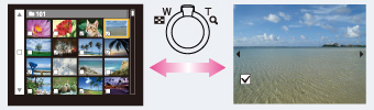Anda dapat beralih antara mode indeks dan satu gambar saat memilih gambarPutar tuas W/T (zoom) ke sisi T (