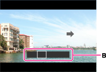 Przesuń aparat do końca znacznika (B), zgodnie ze wskazaniem na wyświetlaczu.