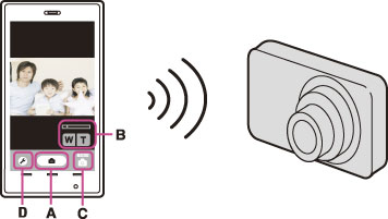 Komponera bilden på din smartphone-skräm och tryck sedan på avtryckaren (A) för att ta bilden.