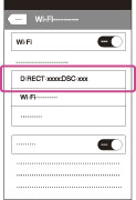Välj (DIRECT-XXXX : DSC-XXXX) på skärmen för Wi-Fi-inställningar för din iOS.